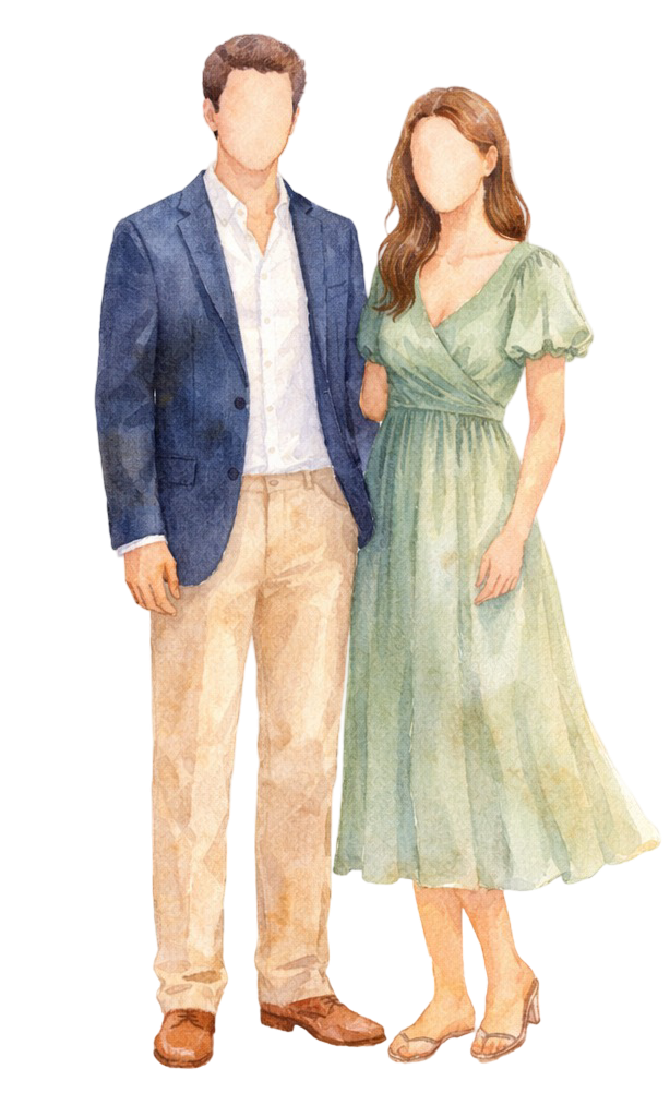 Nuestra boda será en un hermoso jardín tropical al aire libre. Te recomendamos ropa elegante en telas frescas y colores claros.